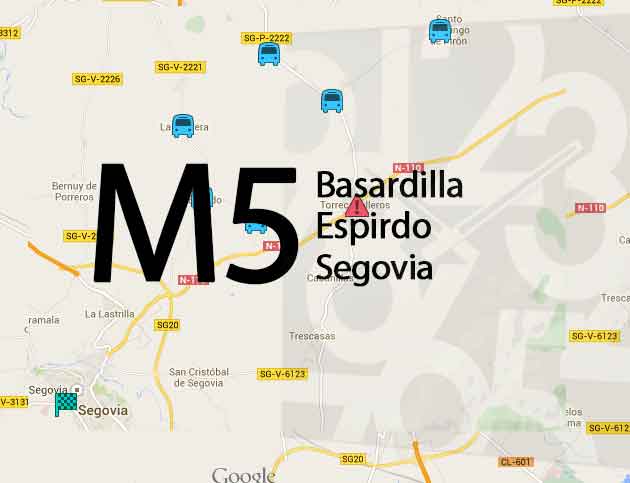 Línea Metropolitana M5. De Segovia a Santo Domingo de Pirón. Con salida en estación de autobuses y paradas en Tizneros – Espirdo – La Higuera – Brieva – Basardilla – Santo Domingo de Pirón. Salidas de Segovia a las 13.45 y 12.45. Recorrido inverso 8.05 (Basardilla, efectúa parada en Torrecaballeros) y 10.05 (Santo Domingo de Pirón). Solo de lunes a viernes laborables. Empresa: Linecar. 921445555. Imprimir Mapa...